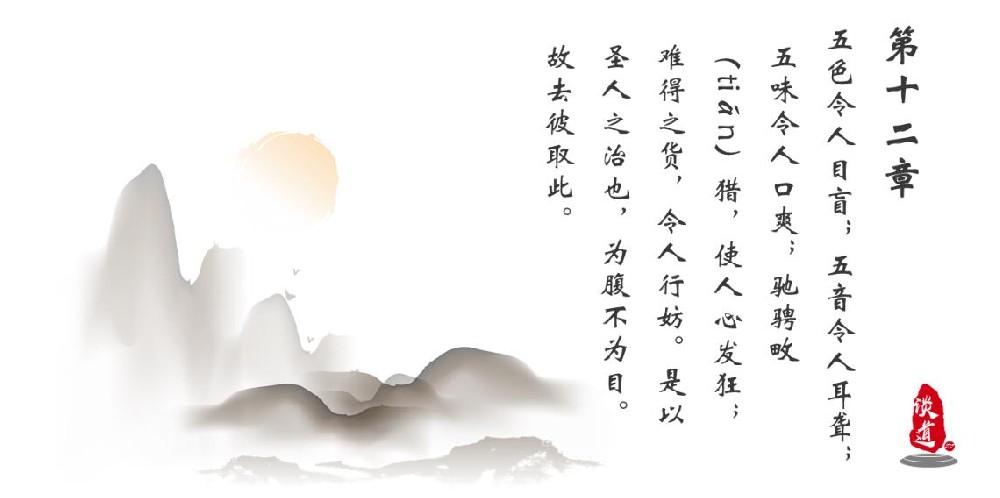 【原文】五色令人目盲,五音令人耳聋,五味令人口爽①,驰骋畋猎②,令人心发狂,难得之货,令人行妨③。是以圣人为腹不为目④,故去彼取此⑤。【注释】①爽:指口腔味觉发生毛病。②田久:打猎。③妨:本指妨碍、损害的意思,这里特指盗窃、掠夺之类行为。④腹:是指内在自我。目:指外在自我或感觉世界。⑤彼:指外。此: