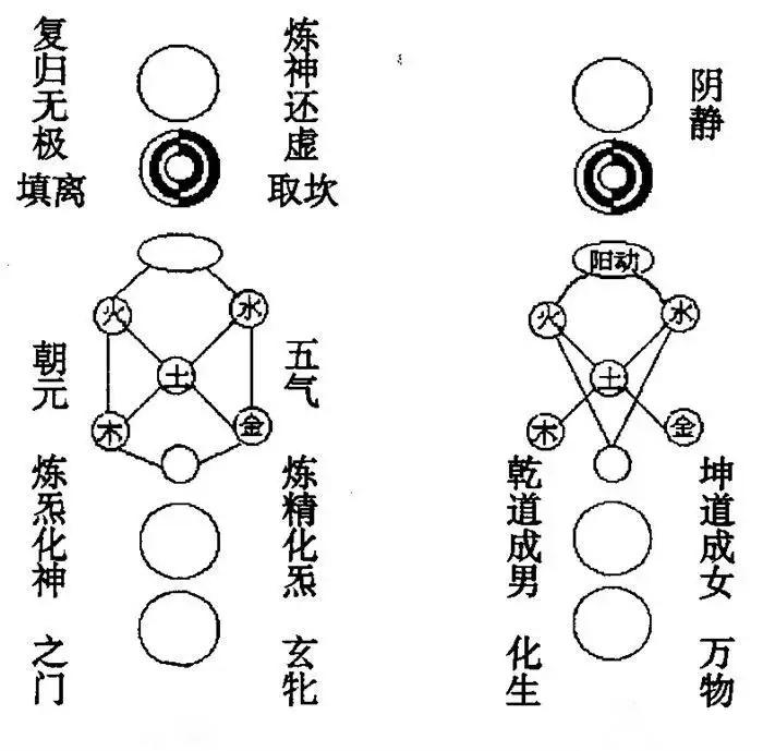 主张双修者,以男女为鼎炉,以男女合一为太极,以此感召先天一炁;清修者,以自身元神元炁为药物,以神炁合一为太极,以此打破玄关。