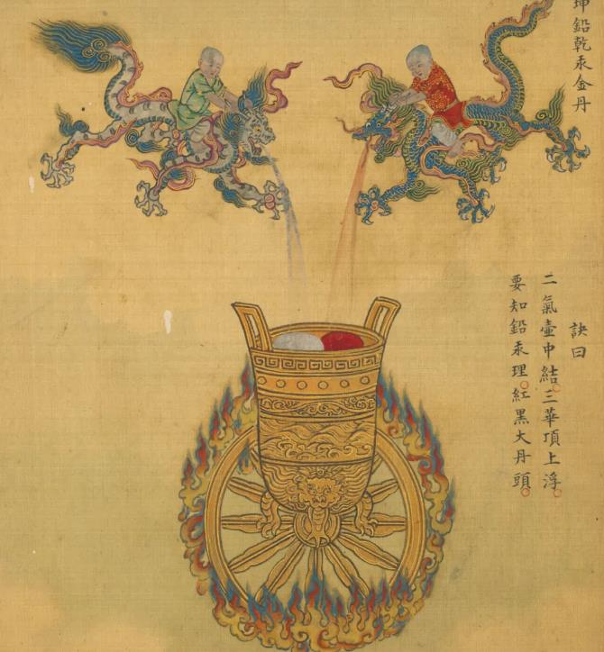其一内药还同外药,内通外亦须通。丹头和合类相同,温养两般作用。内有天然真火,炉中赫赫长红。外炉增减要勤功,妙绝无过真种。